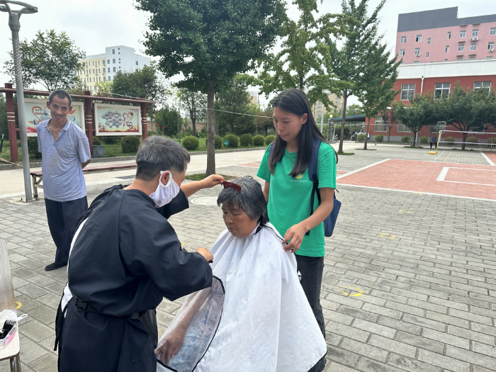 图为实践队联合爱心人士为澄城县中心敬老院进行义剪 张时骏摄