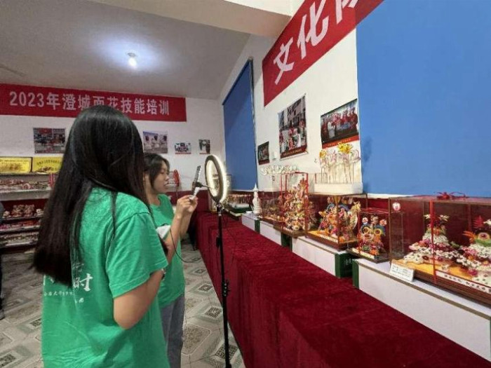 图为实践队员对澄城面花进行直播与讲解 杨沛桥摄