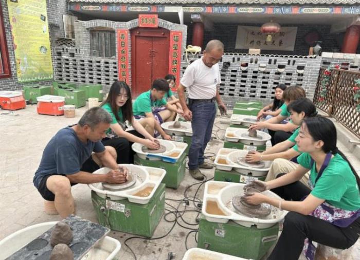 图为实践队成员亲身体验黑瓷制作过程 张时骏摄