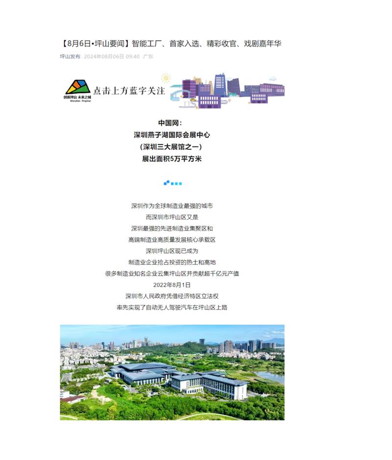 深圳坪山燕子湖国际会展中心微信公众号发布——