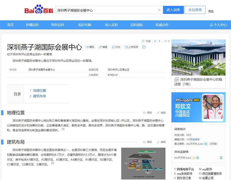 百度百科发布:位于深圳市坪山区商业区的一所展馆,深圳燕子湖国际会展中心是位于深圳市坪山区商业区的一所展馆。位于深圳市坪山区商业区,占地面积87000 m²。