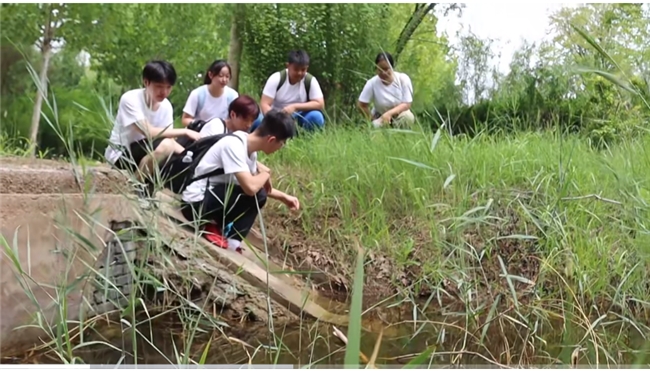 荷塘中,荷叶田田,荷花娇艳。实践团员们漫步塘边,欣赏荷塘美景的同时,更深入认识到荷塘生态系统的保护功能:水湖莲发达的根系,能够有效地吸收水中氮、磷等营养物质,防止水体富营养化引起藻类过度繁殖,并一定程度上富集铅、汞等有害物质;同时,荷塘为蜻蜓、青蛙等水生动物提供了栖息地和食物资源,对维持区域生态平衡和生物多样性发挥着不可或缺的作用。