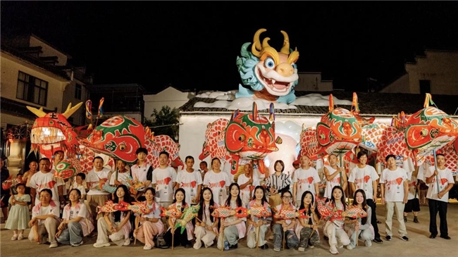 此次活动吸引了众多目光,在夜幕的映衬下,鱼灯舞动,流光溢彩。调研团队的成员们积极融入其中,与村民们默契配合,生动展现了非遗民俗的独特魅力。他们以实际行动深入了解和传承徽州非遗文化,为保护和弘扬地方传统文化贡献力量。通过这场表演,不仅让人们感受到了传统文化的深厚底蕴,也见证了高校团队与地方群众之间的紧密互动与文化交流。这一夜,“嬉鱼灯”的光芒照亮了瞻淇村,也在人们心中留下了深刻的印象,成为推动非遗文化传承发展的又一重要时刻。相信在未来,这样的合作与传承将不断延续,让非遗文化绽放更加绚烂的光彩。