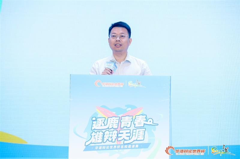 随后,2024华语辩论世界杯名校邀请赛高中组闭幕仪式举行,三亚市人民政府副秘书长谢贻发向各位观众表示欢迎,同时对赛事的圆满举办予以肯定,他表示:“来自世界的高校学子汇聚三亚,共襄盛举,以言会友,以辩明智。学子们能够亲临三亚,亲身体验这座海滨城市的独特魅力,深切感受其深厚的文化底蕴与蓬勃的发展活力。同时,我们用最大的热情欢迎来自全球的优秀学子选择三亚作为学术深造、职业发展、创新创业以及度假休闲的目的地,共同投身于海南国际旅游消费中心、中国特色自由贸易港的蓬勃建设与发展之中,携手贡献智慧与力量,在新时代浪潮中激流勇进、逐鹿青春,与美丽三亚共建、共享、共赢。”