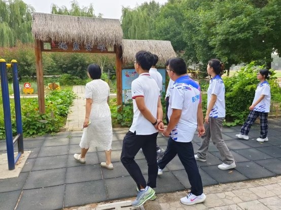 中关村第三小学雄安校区教师部主任带领全体实践队员参观校园
