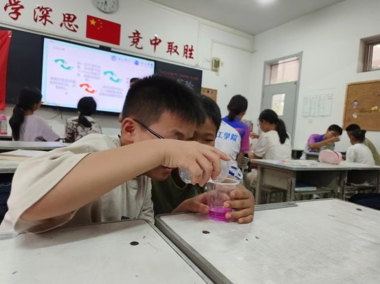 结合学院特色,融入化工元素,开展“食品化学、炼金术与化学发展、化学实验科普大讲堂”等一系列科普课程,普及化学领域的基础知识,通过实验演示、案例分析、故事讲述等方式,激发青少年对化学科学的兴趣和好奇心,揭示科学发展的过程中人类智慧的结晶。