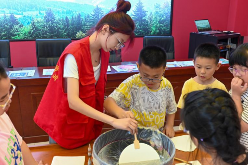 时伟景同学与小朋友们共同创作文创漆扇·骆守骞供图