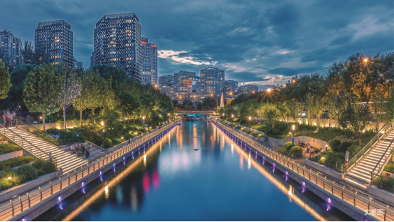 世界的亮马河,不仅是北京重要自然资源,也承载丰富的历史和文化价值。2019年,亮马河国际风情水岸治理实施正式启动,全长9.3公里,流域面积14.25平方公里,流经各国使馆、国际酒店、潮流商圈、朝阳公园等,旨在打造优美的“亲水、近水、乐水”开放水岸。目前已实现东三环到红领巾湖6公里航线通船,18公里滨水慢行系统全线贯通。成为首批国家级夜间文化和旅游消费集聚区、朝阳时尚文化地标、首都国际旅游消费“金名片”。
