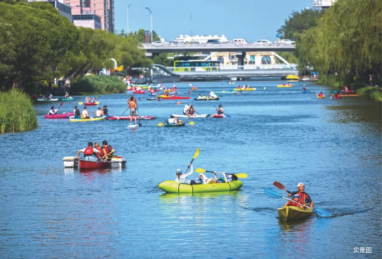 如今,漫步亮马河,是一种国际松弛艺术生活享受。沿岸遍布众多全球建筑和使馆区。遛狗、垂钓、露营、跑步,欣赏1河2湖24桥18景的风光,游泳、划桨板、玩皮划艇等自在惬意。
