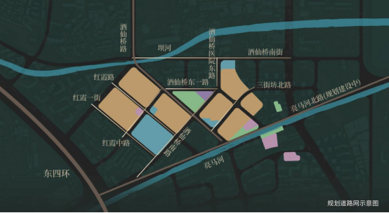 而且板块内,新增设红霞路、酒仙桥东一路、三街坊北路、酒仙桥南街等8条街坊路,再次提升区域道路密度。