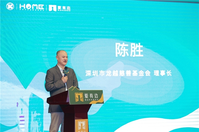 图为深圳市龙越慈善基金会理事长陈胜致辞