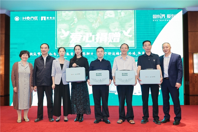 图为活动现场为学校捐赠“学生筑梦包”和“床榻温暖包”