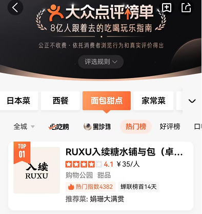▲RUXU入续糖水铺与包(深圳卓悦中心店)▲