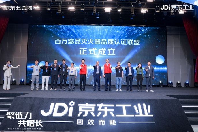 近日,以“聚链力 共增长”为主题的2024京东工业合作伙伴大会正式举行。会上,在中国消费品质量安全促进会消防产品工作委员会(简称“中消会消防工作委员会”)的见证下,京东工业“百万爆品灭火器品质认证联盟”正式成立。联盟将聚合行业协会、检测机构、品牌厂家、平台等多方力量共建品质供应链,推动灭火器行业的标准化建设与品质升级。江荆、神龙、超亿、中商巨建、鑫辉、东润、国佑、台谊、浙安等知名消防品牌成为联盟首批合作伙伴。