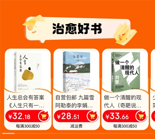 面对生活中的各种不确定性,越来越多的年轻人喜欢用书籍进行自我疗愈,读一本好书,是他们精神的片刻小憩,也是看向远方的希冀。洞察到当代年轻人的精神需求,京东图书在本次11.11活动专区推出了“治愈好书”栏目,收录了包括非虚构作家李娟首部散文集《九篇雪》、著名学者刘擎全新力作《做一个清醒的现代人》,以及治愈系亲子读物《人生总会有答案》、对抗情绪内耗的佳作《勇敢的人先享受世界》等众多治愈系书籍。读者们在感受作家对生活的探索和勇气时,也能从中汲取对抗焦虑,获得内心安宁的良方。