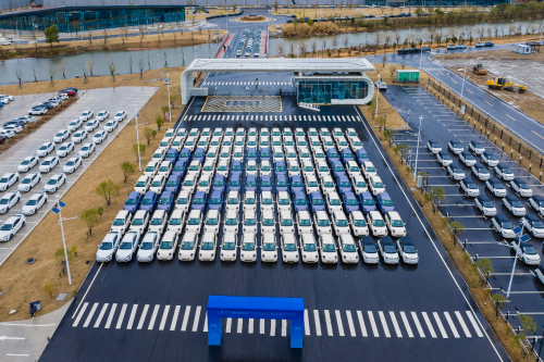 2月21日,江淮汽车10000辆新能源汽车出口首批发车仪式在中国安徽江淮钇为智慧工厂举行。