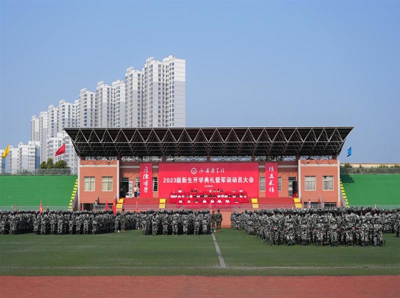 9月4日, 2023级新生开学典礼暨军训动员大会在西安医学院未央校区体育场举行。党委书记刘岭向军训团授旗,校长杨帆讲话,全体在校领导及武警陕西总队西安支队机动大队中校大队长王超出席会议,党委副书记熊冬梅主持大会。来自全国五湖四海的3363名本科生和291名研究生齐聚一堂,迈入学业生涯新阶段,掀开人生新篇章。
