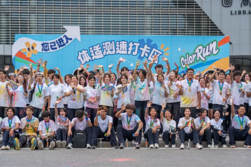 活动当天,他们在图书馆前的广场聚集,沿着风景渠奔跑。工作人员向人群抛撒赤红、明黄、蔚蓝的粉末,笑声和尖叫声,充满校园。