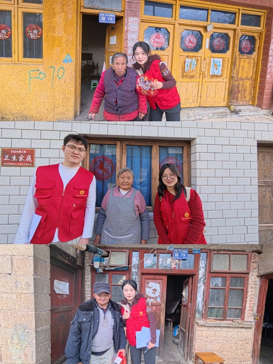 入户走访中,志愿者为老人送上新春窗花,亲手张贴于门窗之上,让农家小院洋溢浓厚年味儿。团队围坐于老人身边,耐心倾听其饮食起居、健康状况与生活诉求,志愿者发挥专业优势,现场解答老人关于化肥储存防潮防泄漏、家用清洁剂混合使用禁忌等生活难题,让专业服务融入日常细节。针对独居老人,志愿者定期陪伴聊天解闷,分享高校科研趣事与乡村发展动态,搭建跨越年龄的沟通桥梁,驱散老人孤独感,践行“博士村长”项目“扎根乡村、服务群众”的初心使命。