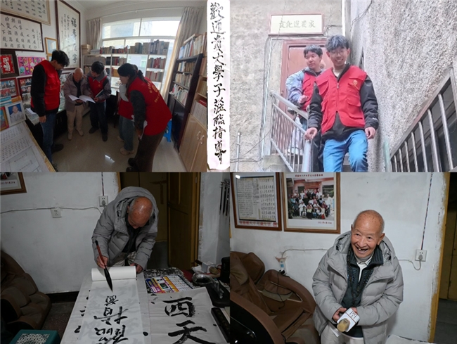 实践期间,91岁的当地“老村长”主动邀请服务团参观其“文化进农家”收藏屋,屋内陈列的书籍、老农具与手作藏品,承载着老人对文化的坚守与对生活的热爱。“活到老、学到老,就像你们‘博士村长’一样,扎根乡村、精益求精。”老村长结合自身经历分享人生感悟,鼓励团队深耕专业、服务乡村,并挥毫泼墨写下“欢迎贵大学子莅临指导”的书法作品。这份跨越年龄的双向认可,既是对“博士村长”项目的高度肯定,也成为校地协同、老少同心的生动见证,让专业实践更添人文厚度。