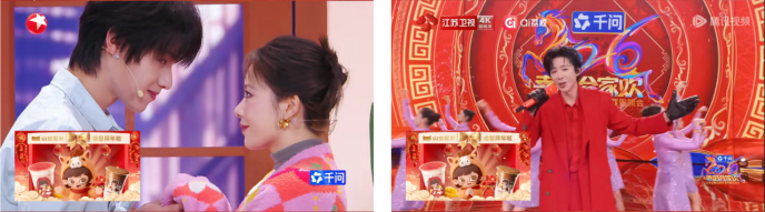 再到春晚,追觅科技成为央视历史上首个“智能科技生态战略合作伙伴”,山也觅茶作为其官方饮品合作伙伴,共享了这一国家级舞台的荣耀时刻。在东方卫视、江苏卫视春晚的节目中,山也觅茶同样以场景化方式植入。