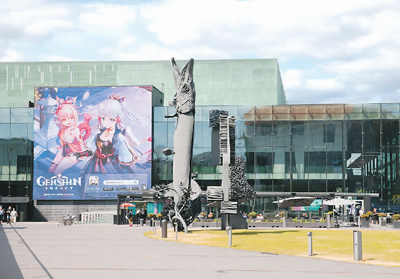 近日,在芬兰赫尔辛基街头,中国公司米哈游制作的游戏《原神》宣传广告海报占据醒目位置。