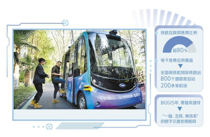 交通物理设施不断完善,让交通系统“肌肉”更强健,百姓出行有了更坚实的依托。而数字技术与交通融合产生的化学反应,则让交通系统“大脑”更智能,百姓能更便捷地享受出行服务——铁路互联网售票比例超过80%;电子客票应用覆盖全国高铁和城际铁路站、800个道路客运站和200多家机场;高速公路客车ETC使用率超过71%……