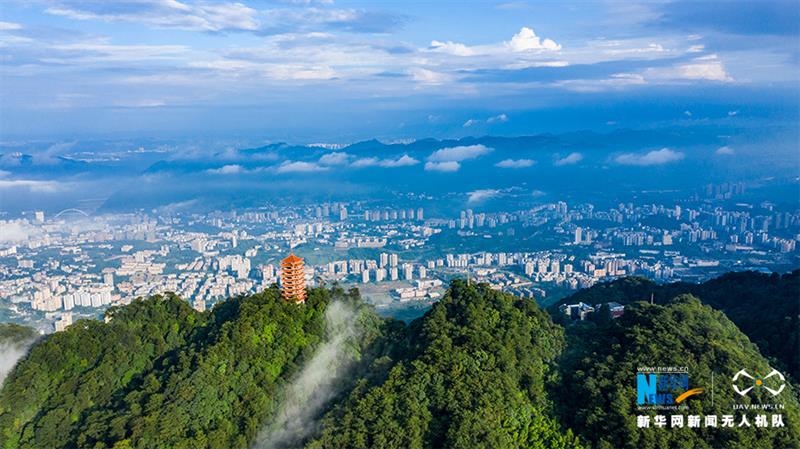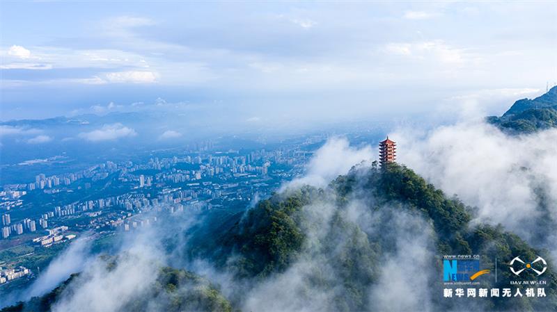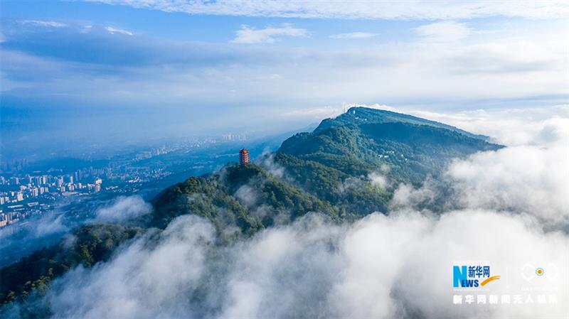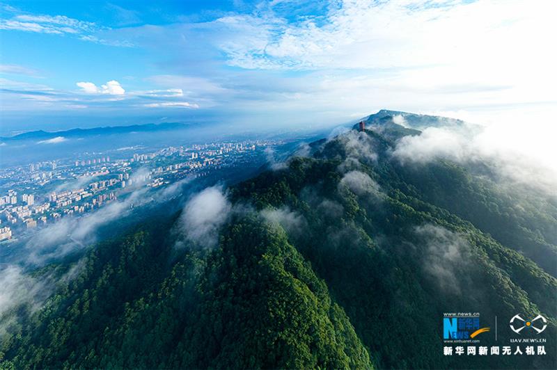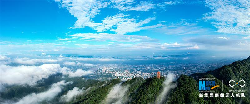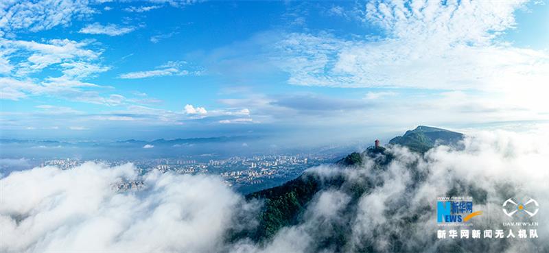 一场雨后,重庆市北碚区缙云山迎来绝佳景致。蓝天白云之下,青山屹立,云雾缭绕,宛如一幅壮阔画卷。新华网发(秦廷富 摄)