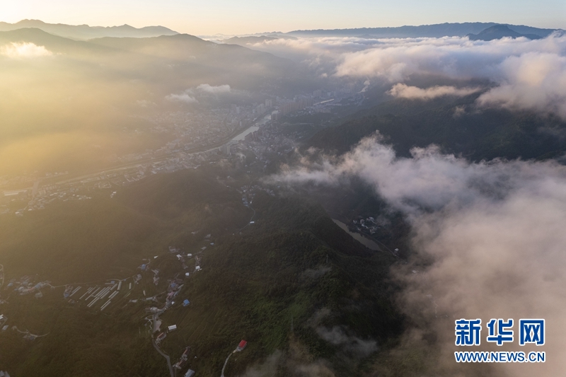 航拍湖北省襄阳市保康县云海景观 新华网发 陈泉霖摄