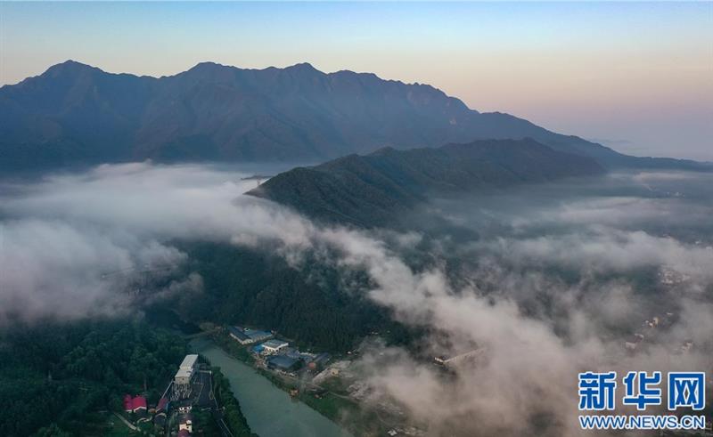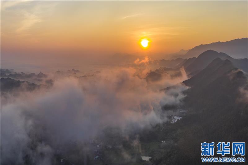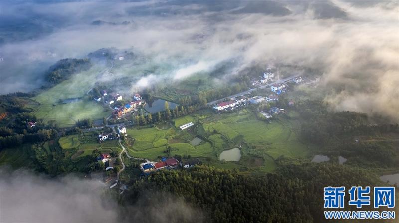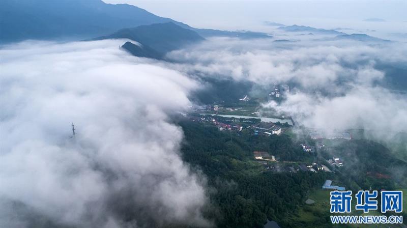 无人机航拍江西省武宁县石渡乡盘溪村,云海翻涌,宛如仙境。新华网发 张项理 摄