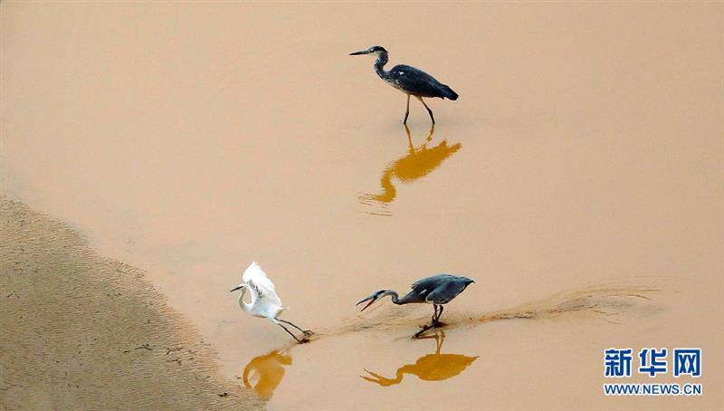 运城市平陆县黄河湿地好汉坡段吸引不少苍鹭来此栖息、繁衍。新华网 发
