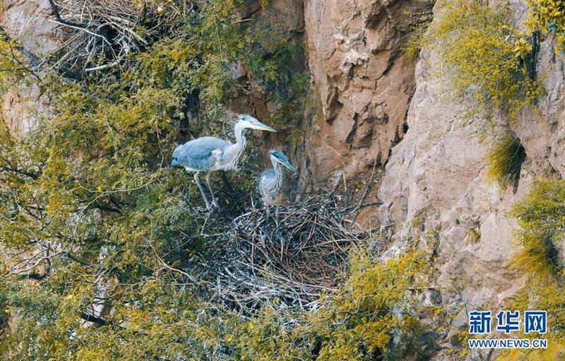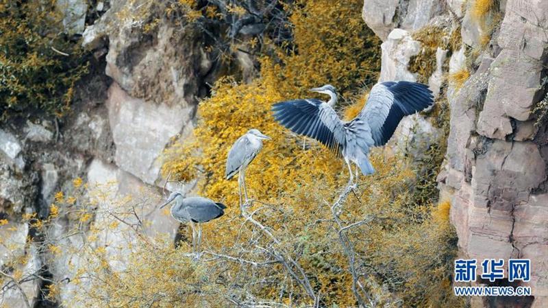苍鹭犹如峭壁上飞舞的精灵。新华网 发