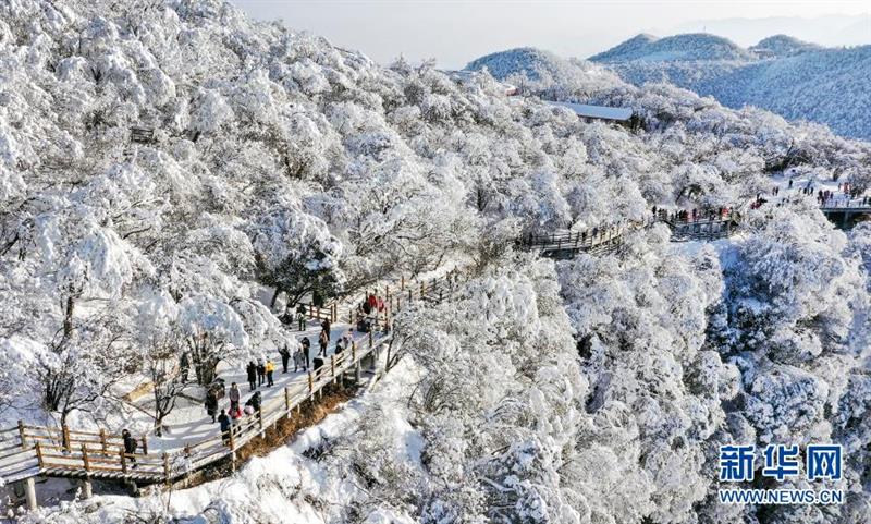 连续几场瑞雪将川陕交界的汉中市南郑区龙头山景区,变成漫山雾凇的童话世界。