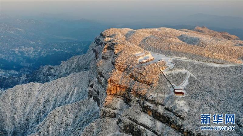 12月20日拍摄的雪后初霁的龙头山景区(无人机照片)。