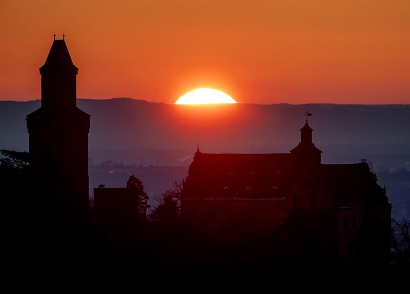 2月13日在德国克龙贝格拍摄的日出。新华社/美联