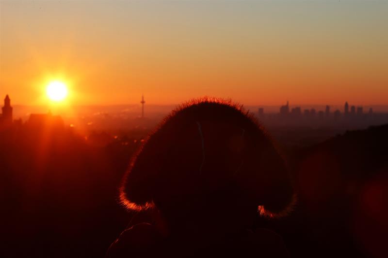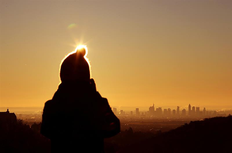 2月13日,一名女子在德国法兰克福附近观看日出。 新华社/路透