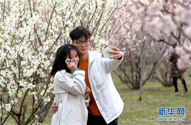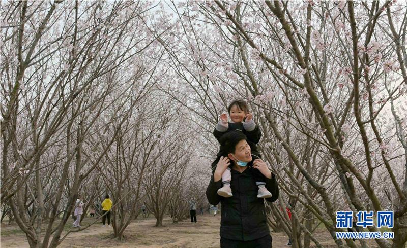 近日,素有“樱桃之乡”的安徽省阜阳市太和县沙颍河湿地的樱桃花竞相绽放,或粉或白,构成了春季美丽风景,吸引众多游客前来踏青赏花。新华网发(陶俊 摄)
