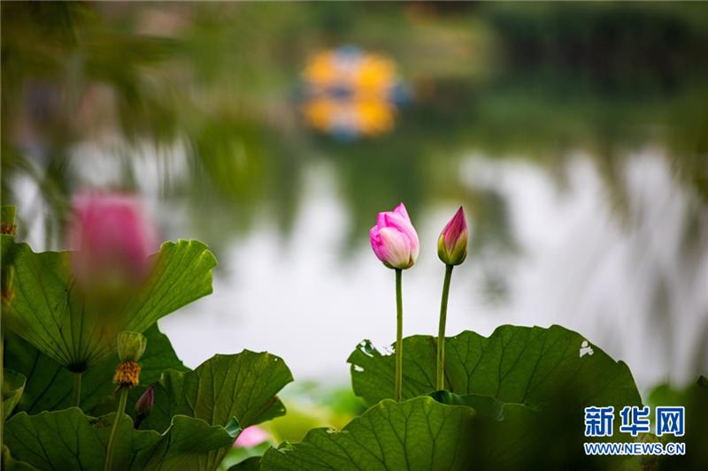 6月26日,安徽省淮北市东湖国家湿地公园里的荷花竞相盛开。