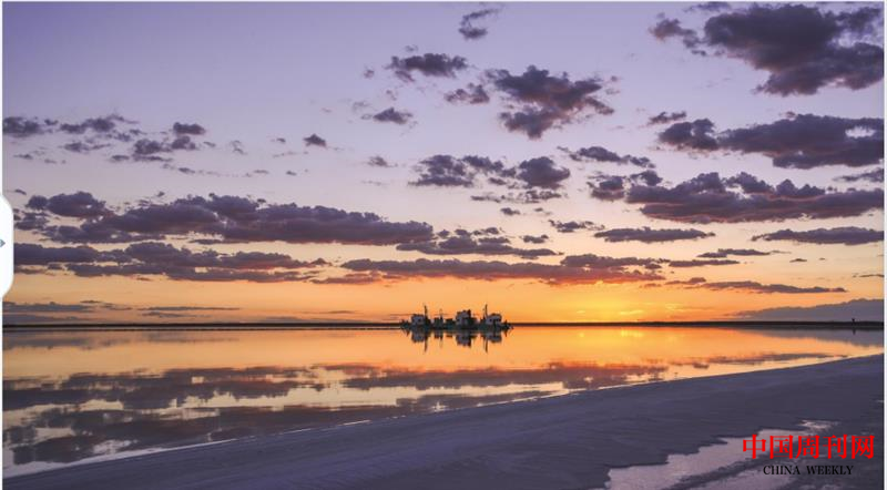 察尔汗盐田夕照
