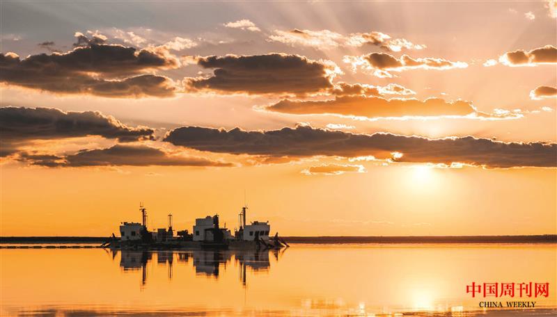 察尔汗盐湖夕照