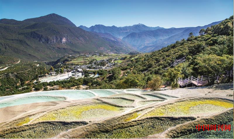 近年来,附近航空、铁路、高速公路构筑的立体交通网络,突破了高山桎梏,让全球旅游达人得以实时洞见白水台的美。纳西族村庄白地村也因白水台而名闻天下,靠着这一方华泉台地和古老神秘的东巴文化吸引来了一批又一批的游客。村里的农户开起了客栈、农庄、饭店,实现了经济快速增收,当地村民们真正端上了“绿水青山”的金饭碗。