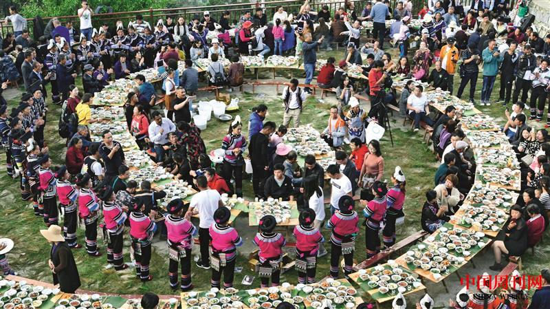 长街宴开始,龙头率领全寨人高举酒杯,祝愿来年风调雨顺。凡参加宴会的人,第一筷夹各家摆在桌子中央切成小块的龙猪肉吃下,示意龙已入心,然后再吃其它菜肴。如游人遇上长街宴,人们纷纷让座,拉你入席,盛情招待。近些年,长街宴的规模更大,每年参加长街宴的人数约4000多桌,2万多人,宾主一起吃菜、喝酒、互相祝福,喜气洋洋。