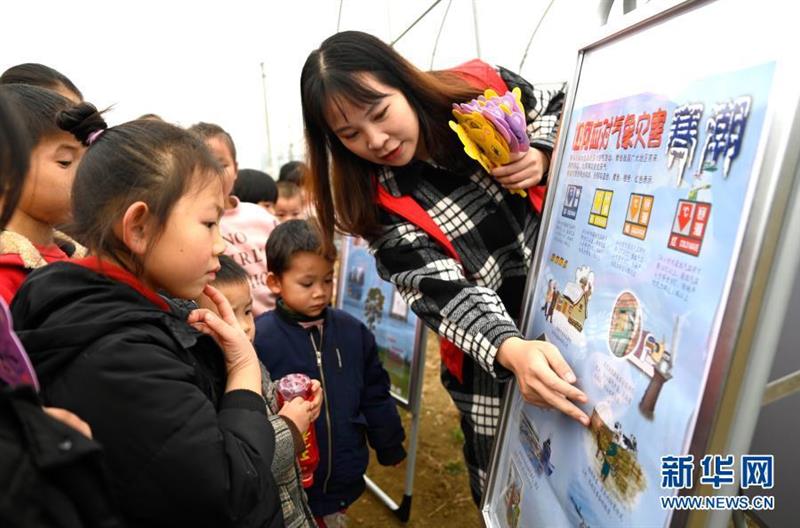 12月27日,在广西柳州市柳江区进德镇龙新村,志愿者给村里的小朋友讲解气象知识。