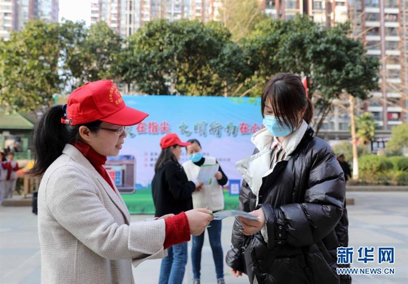 3月14日,志愿者向居民讲解垃圾分类、资源回收利用等常识。