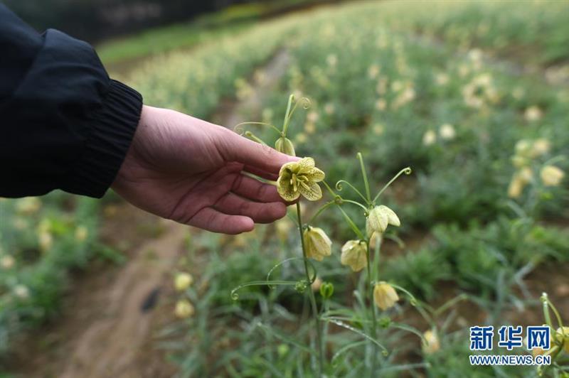 3月20日,志愿者吴科寰在诸暨市次坞镇一个中药材种苗基地查看贝母生长情况。
