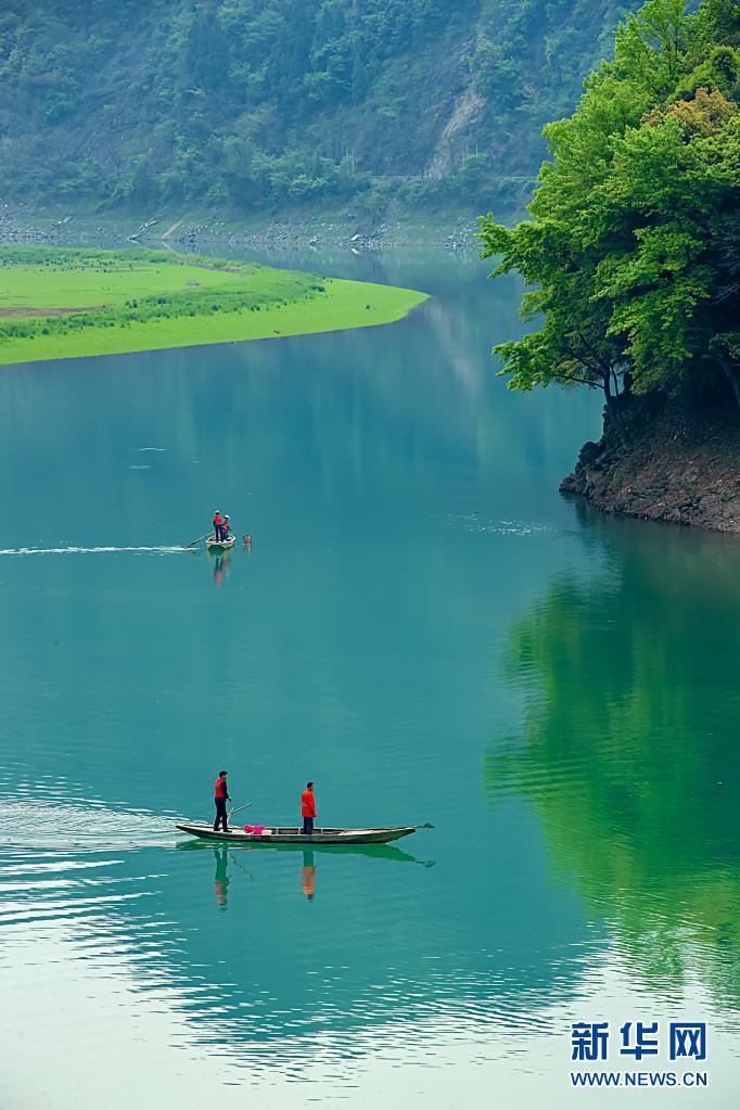 4月7日,浙江省淳安县临岐镇五庄村的“河小二”在湖面巡查,保持水体清洁。新华社发(毛勇锋摄)