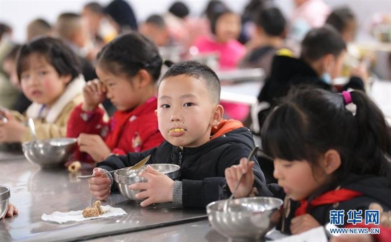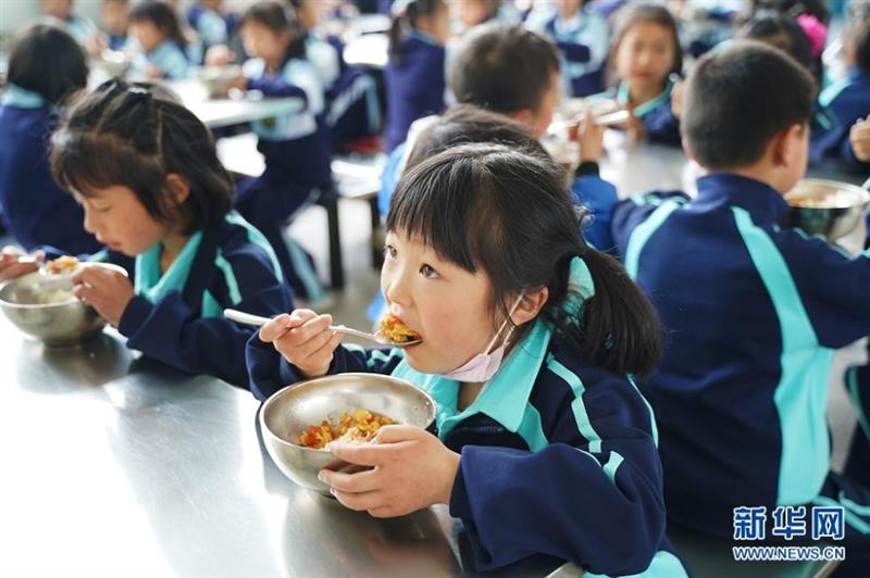 图为2021年5月20日,鹤峰县太平镇贺龙希望小学的学生正在吃免费午餐。新华网 吴文华摄