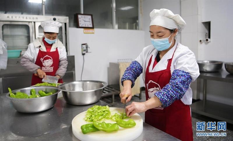 图为鹤峰县中营镇民族中心学校的厨师正在切菜。新华网发 杨顺丕摄