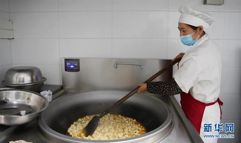 图为鹤峰县中营镇民族中心学校的厨师正在炒菜。作为国家级贫困县,鹤峰县在财力有限的情况下,除了保障全县学校教师工资、燃料、水电、食堂建设等费用外,每年投入一百多万专项资金用于支持“免费午餐”行动。新华网发 杨顺丕摄