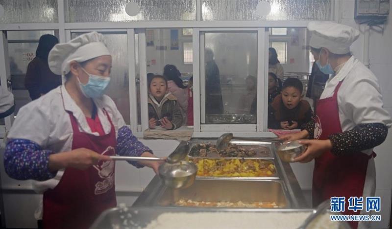 图为鹤峰县中营镇民族中心学校的厨师正在给学生盛“免费午餐”。新华网发 杨顺丕摄